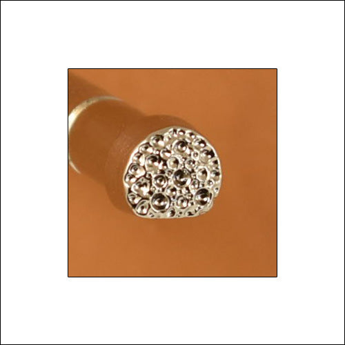 •Matting Pebble Texture Round Medium M887 Leather Stamp. •Stamped on the tool is M887 and Made in Japan. •Die-cast zinc composition provides excellent detail and is great for normal use. •Chrome plate finish adds a beautiful, shiny appearance. •Knurled handle for good grip. •Quality leathercraft stamp makes a crisp impression on veg-tanned leather. •Brand new leather design stamp at an economical price. •Approx. stamp dimensions: 11/32" (8.7mm) diameter.