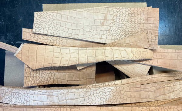 Embossed Veg Tan Leather Remnants Strips Pieces Approx. 4 lbs Small Projects Repair Jobs