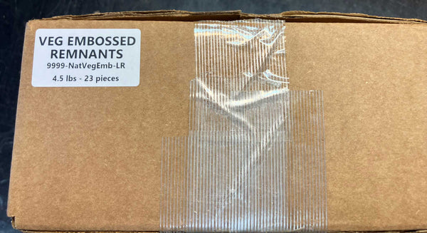 This box of embossed veg tan leather contains pieces that are perfect for small projects and repair jobs. The 12" x 9" x 4" box contains approximately 4 lbs. of various sizes and thicknesses of mostly trimmed embossed veg tan leather remnants. Thickness will range from medium to medium-heavy (approximately 7/64" to 10/64"). Images shown are of various angles of the veg-tan leather remnant box you will receive.