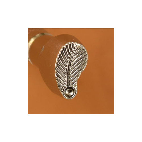 •Border-Feather-Left O76 Leather Stamp. •Stamped on the tool is O76 and Made in Japan. •Die-cast zinc composition provides excellent detail and is great for normal use. •Chrome plate finish adds a beautiful, shiny appearance. •Knurled handle for good grip. •Quality leathercraft stamp makes a crisp impression on veg-tanned leather. •Brand new leather design stamp at an economical price. •Approx. stamp dimensions: 9/32"x1/2" (7.1x12.7mm).
